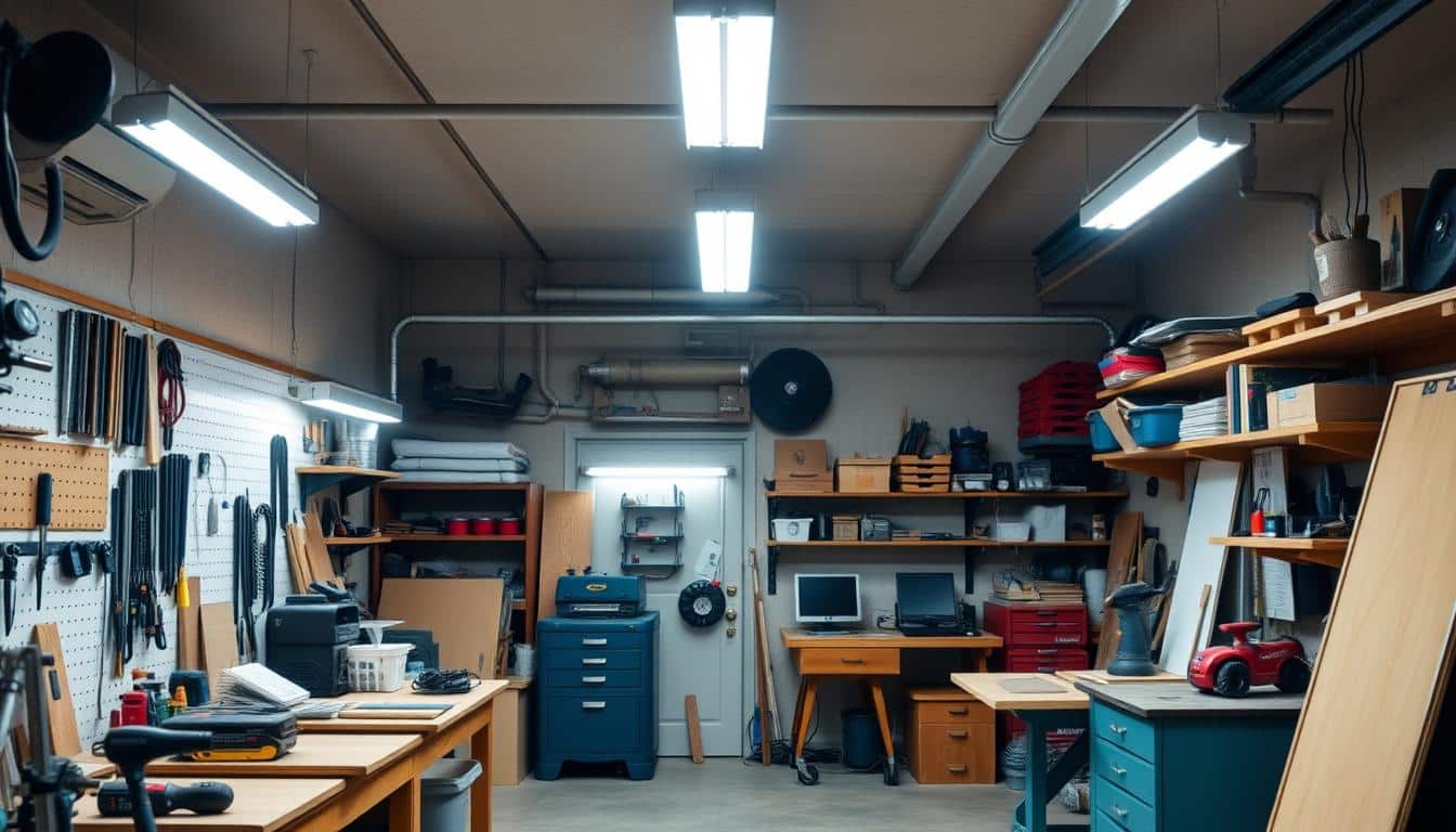 A good workshop lighting system is important for better work, safety, and comfort. We talked about how to choose the right lights. This means looking at things like the kinds of light, how much energy they use, and the rules for safety.